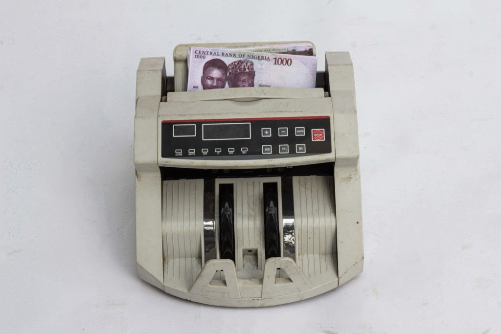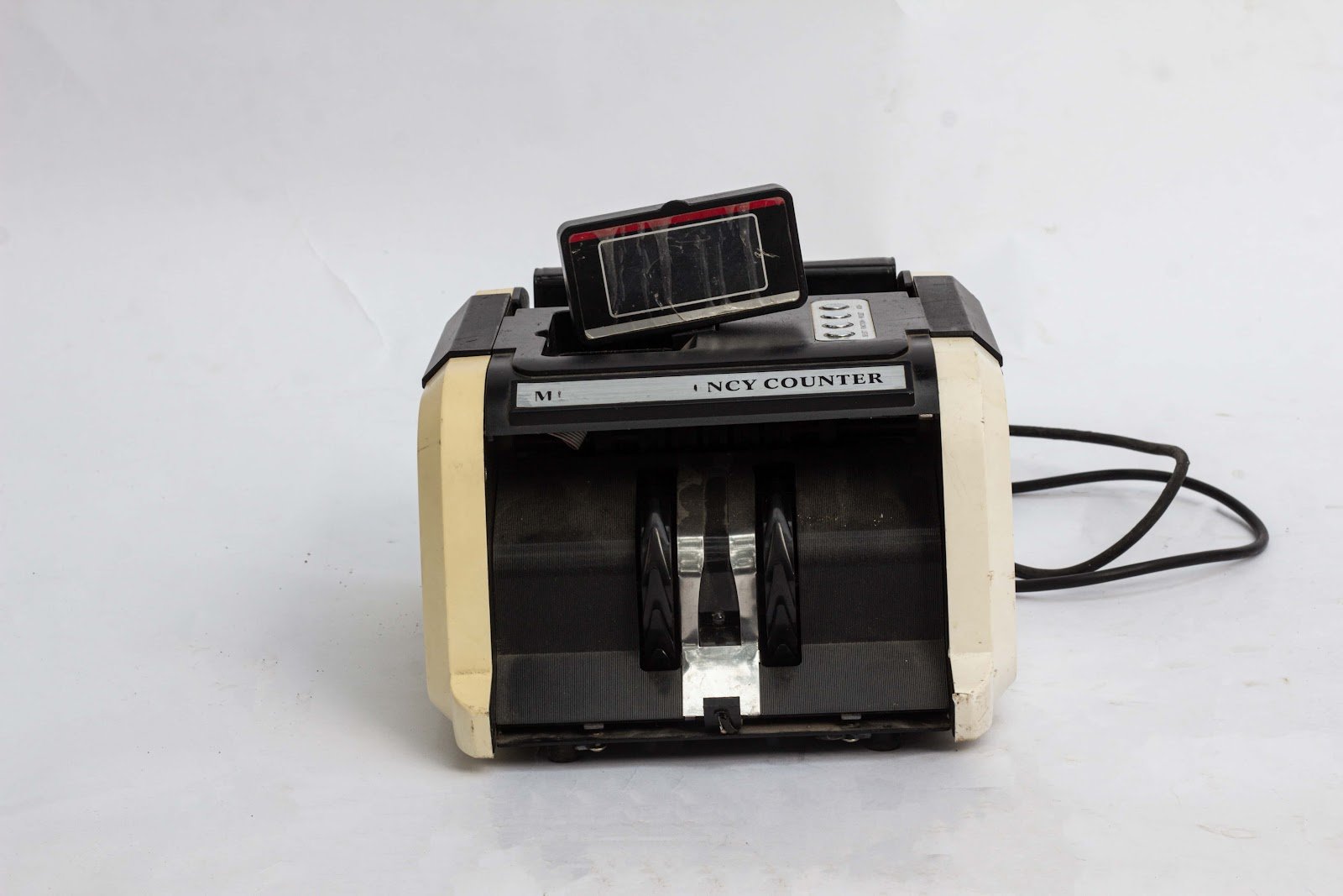 Black and Cream Counting Machine with Wire and Plug, Streamline your cash handling with this efficient bill counter.