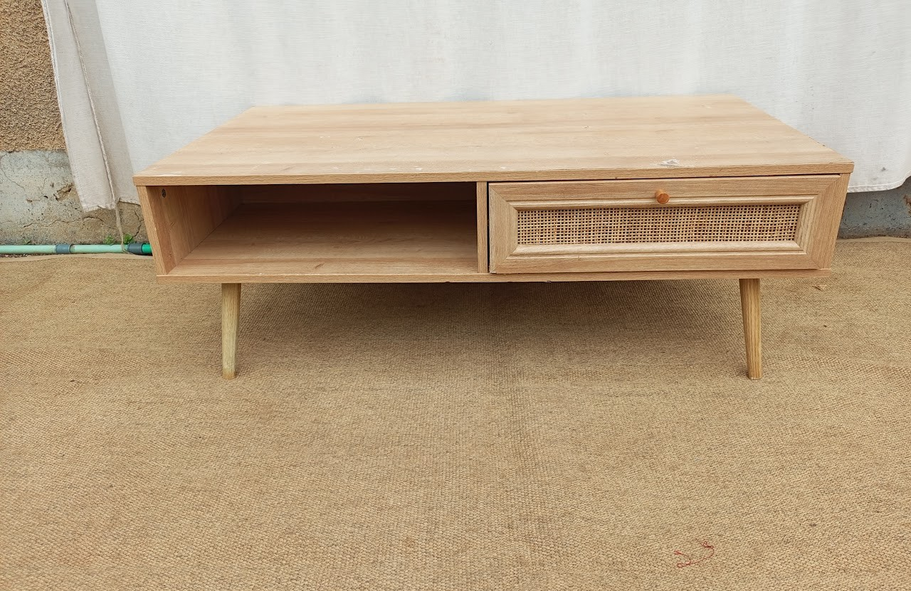 Bring natural charm and practical storage to your space with this brown wooden center table featuring elegant rattan detailing. The sturdy wood construction ensures durability, while the woven rattan accents add a touch of tropical style. A conveniently built-in drawer provides extra storage for essentials, keeping your area tidy and organized.