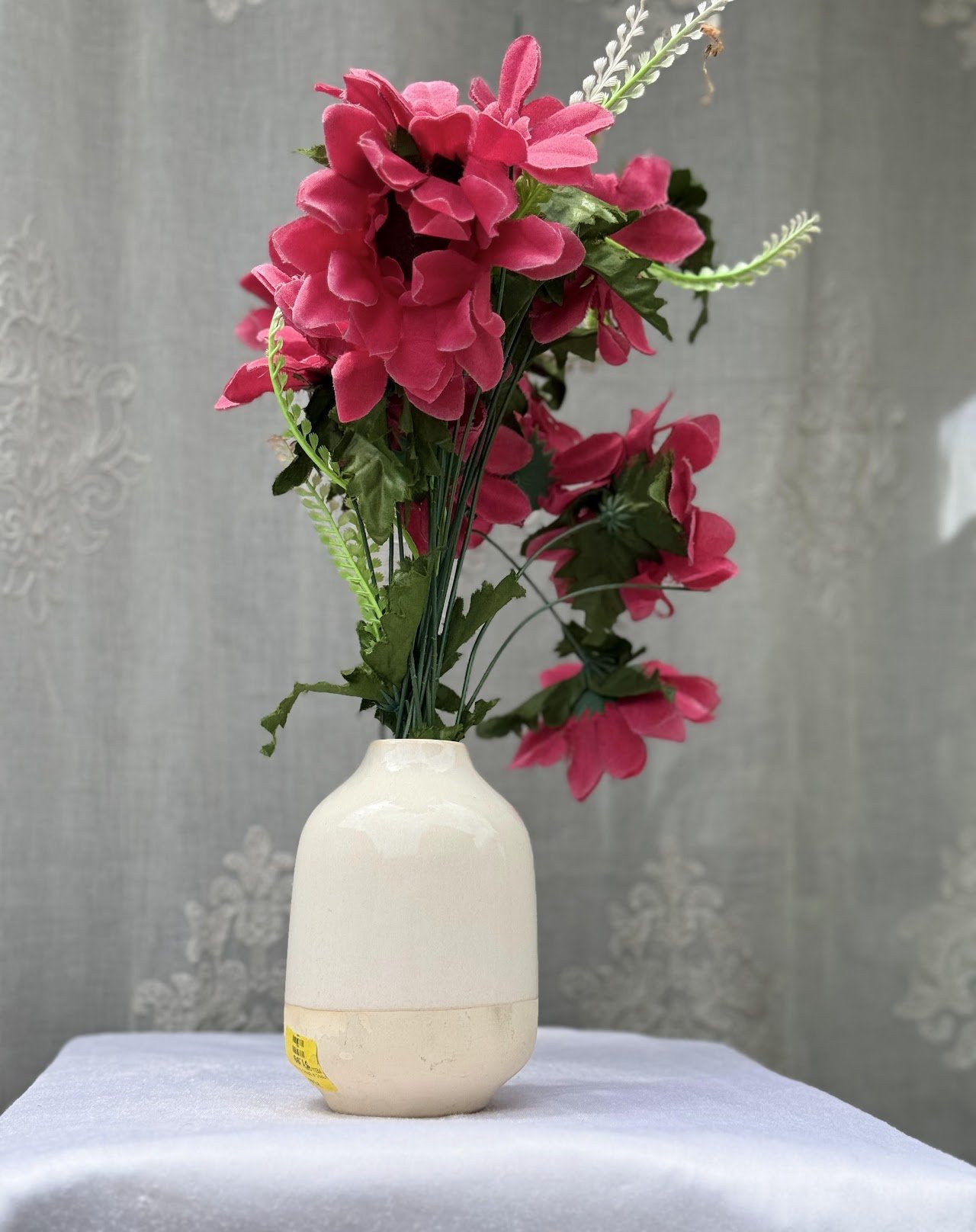 Embrace contemporary minimalism with this Pill-Shaped “Dipped” Ceramic Vase with Artificial Flowers. Featuring a sleek, rounded silhouette and a stylish two-tone “dipped” aesthetic, this ceramic vessel offers a perfect balance of texture and modern design.