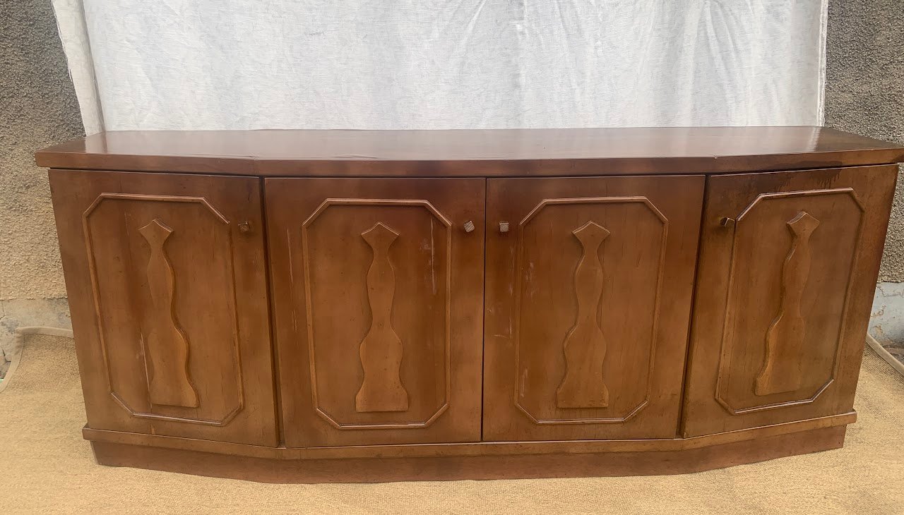 Enhance your space with this Brown Wooden Console featuring four spacious cabinets. Crafted from sturdy wood with a warm brown finish, this console offers generous storage for organizing essentials while adding a touch of classic style to any room.