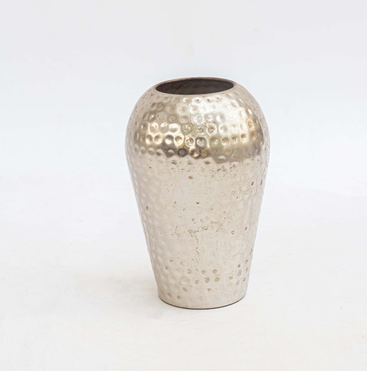 Introduce modern texture and bold style to your space with this hammered metal vase. Featuring a distinctive hand-hammered finish, this vase brings a unique, artisanal touch to any setting.
