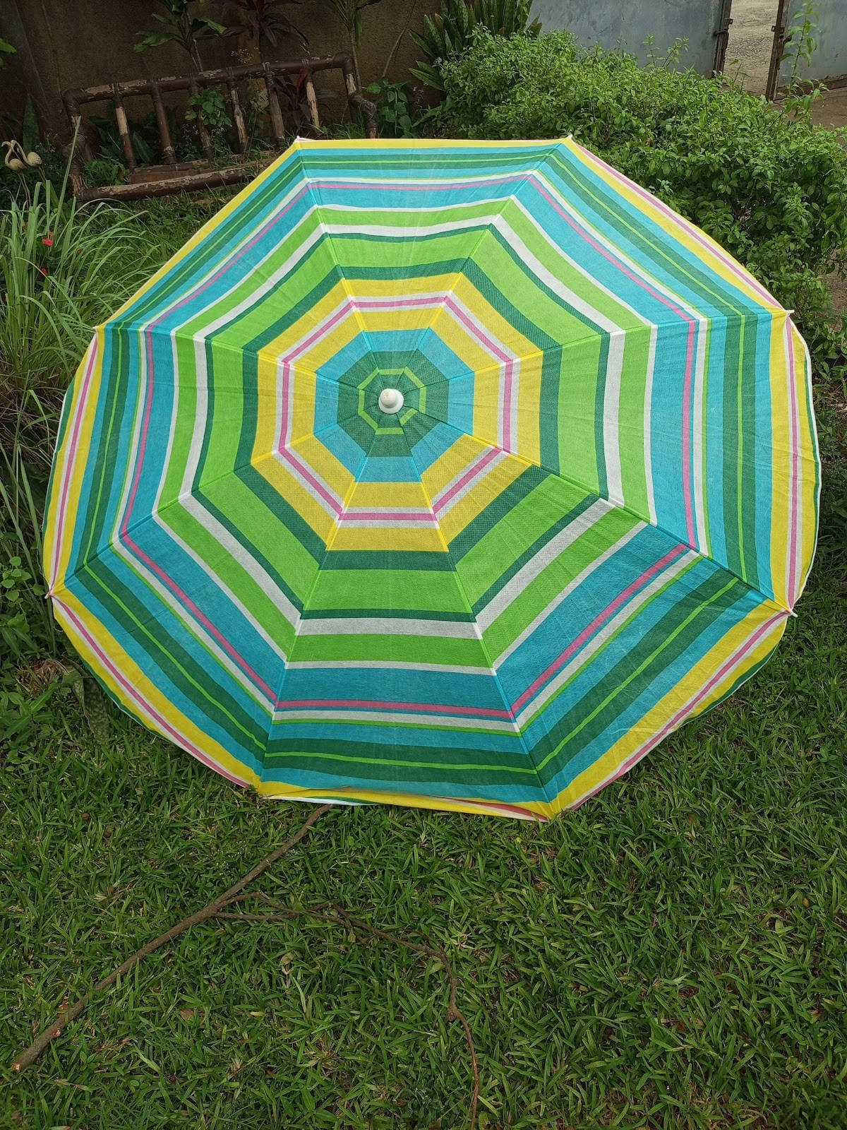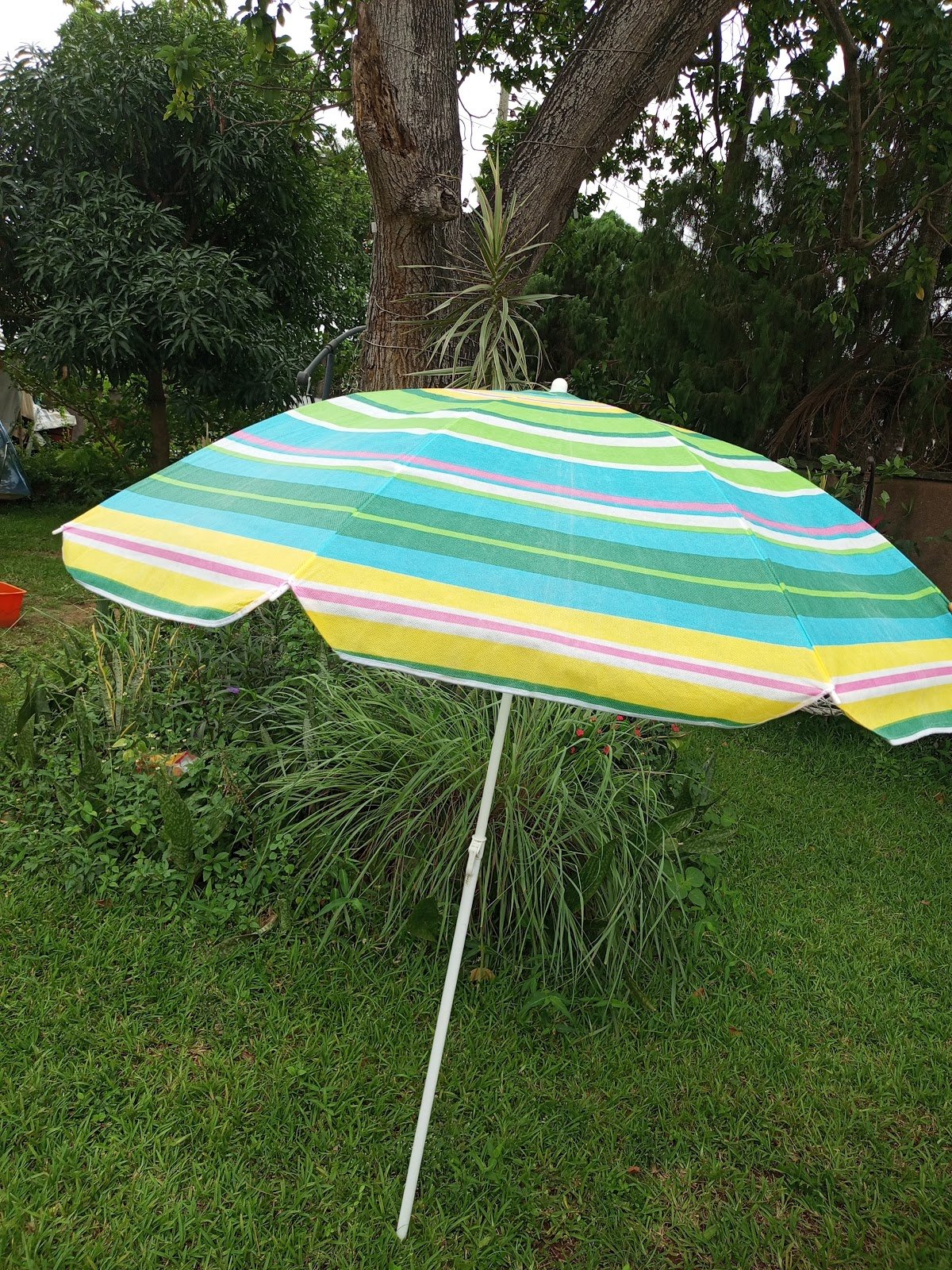 FeaturesMulti color Beach umbrella with white plastic stand