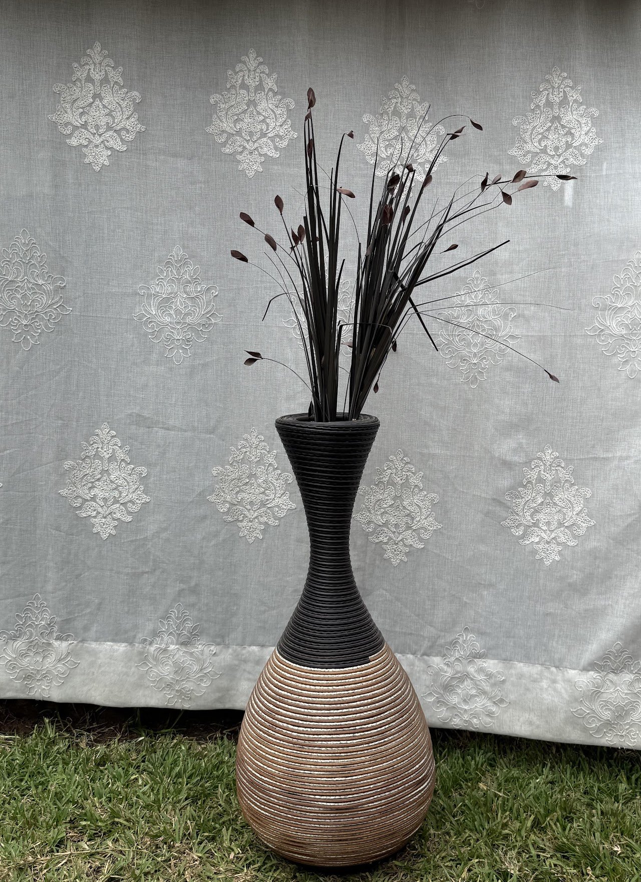 Create a captivating focal point with our Ribbed Hourglass Floor Vase. This striking piece features a slender, tapered neck and a bold, bulbous base, enhanced by elegant ribbed detailing. Its sculptural silhouette adds modern sophistication and visual interest to any setting.