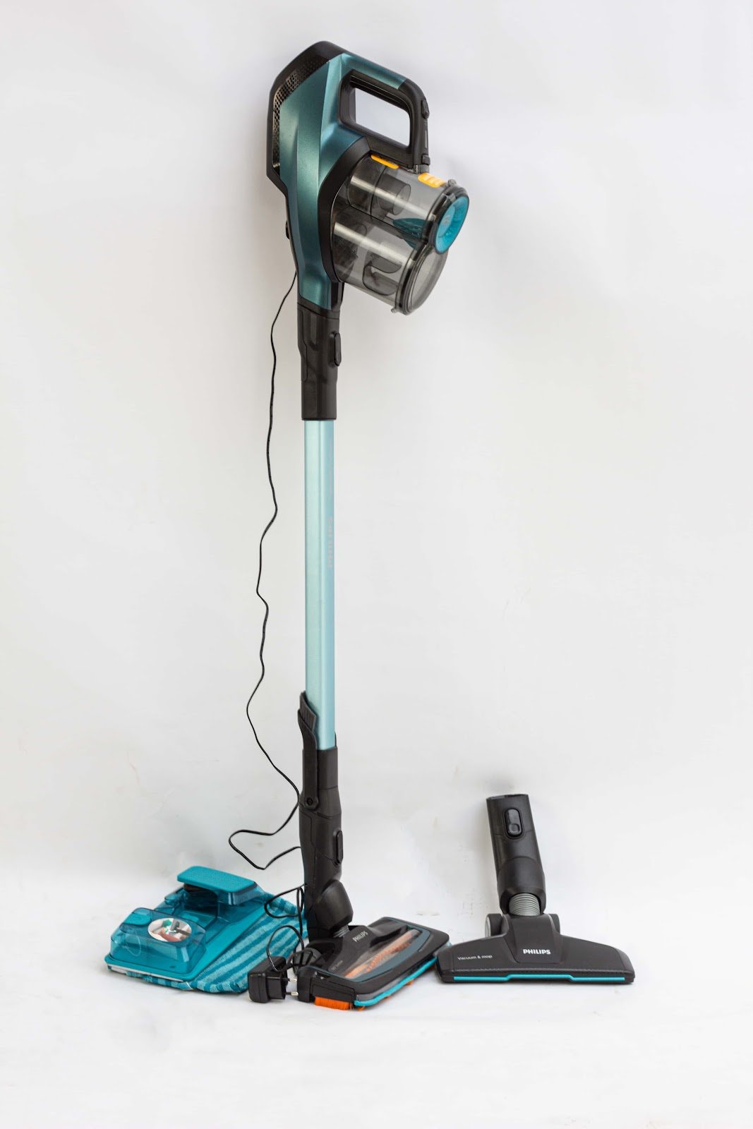 Battery-powered Philip Speed Pedro Aqua vacuum cleaner with extra vacuum head.Â